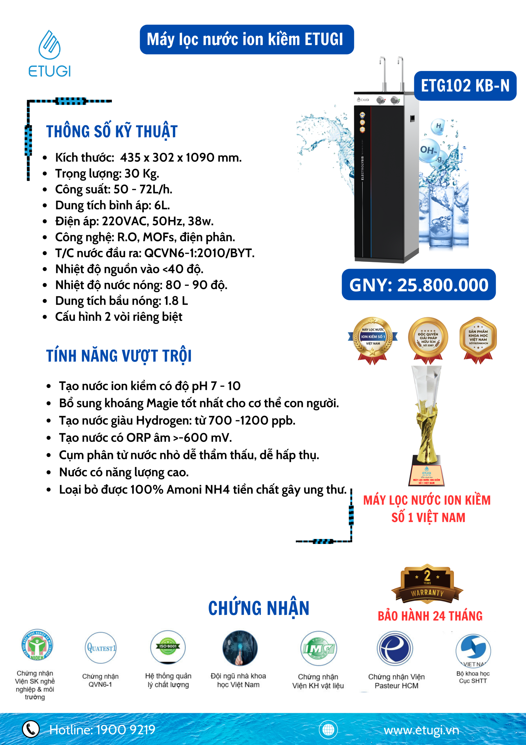 Máy Lọc Nước Ion Kiềm Etugi ETG102 KB-N 3 chế độ nước nóng – nguội – lạnh