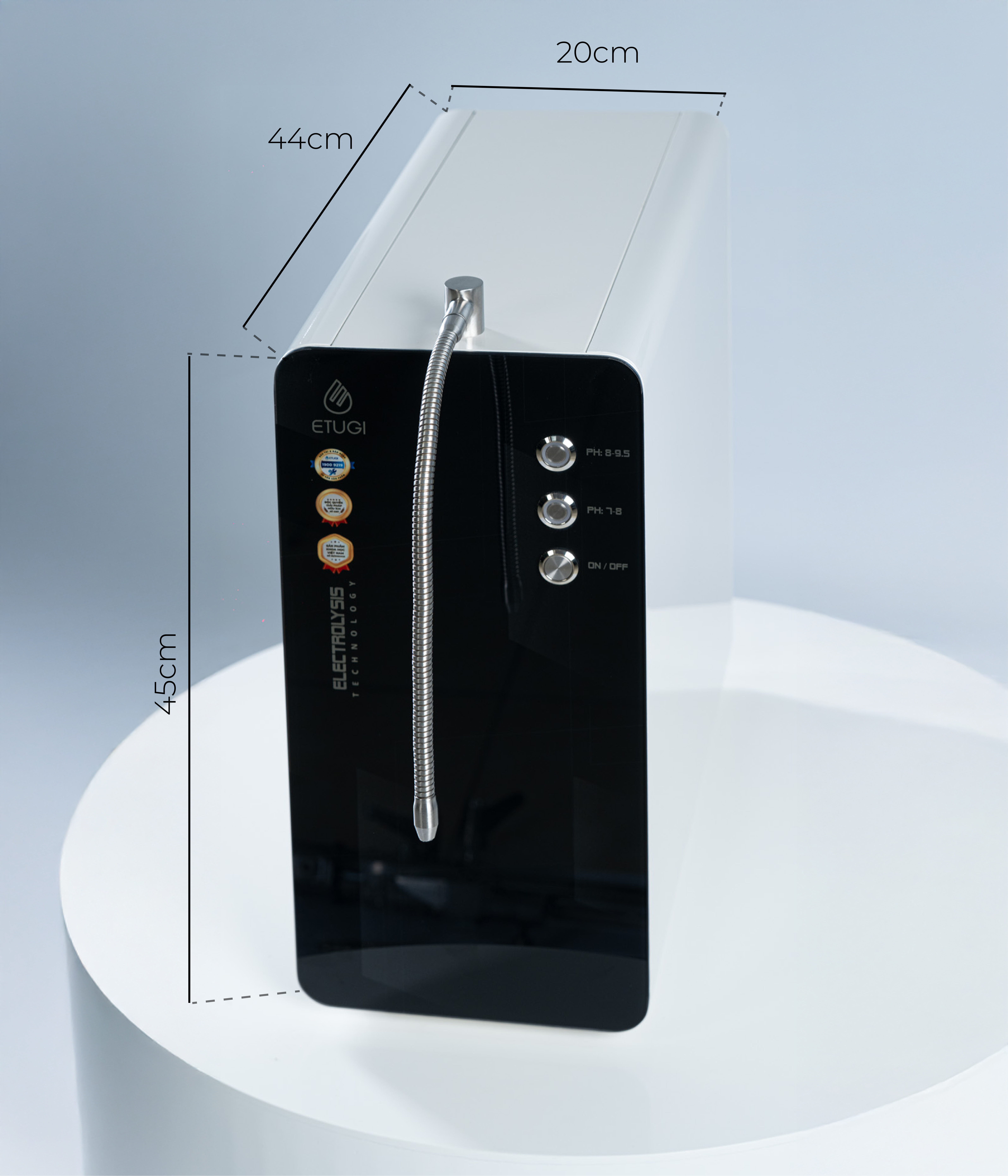 - Công nghệ điện phân trực tiếp từ nước RO, không cần thêm lõi tạo khoáng.