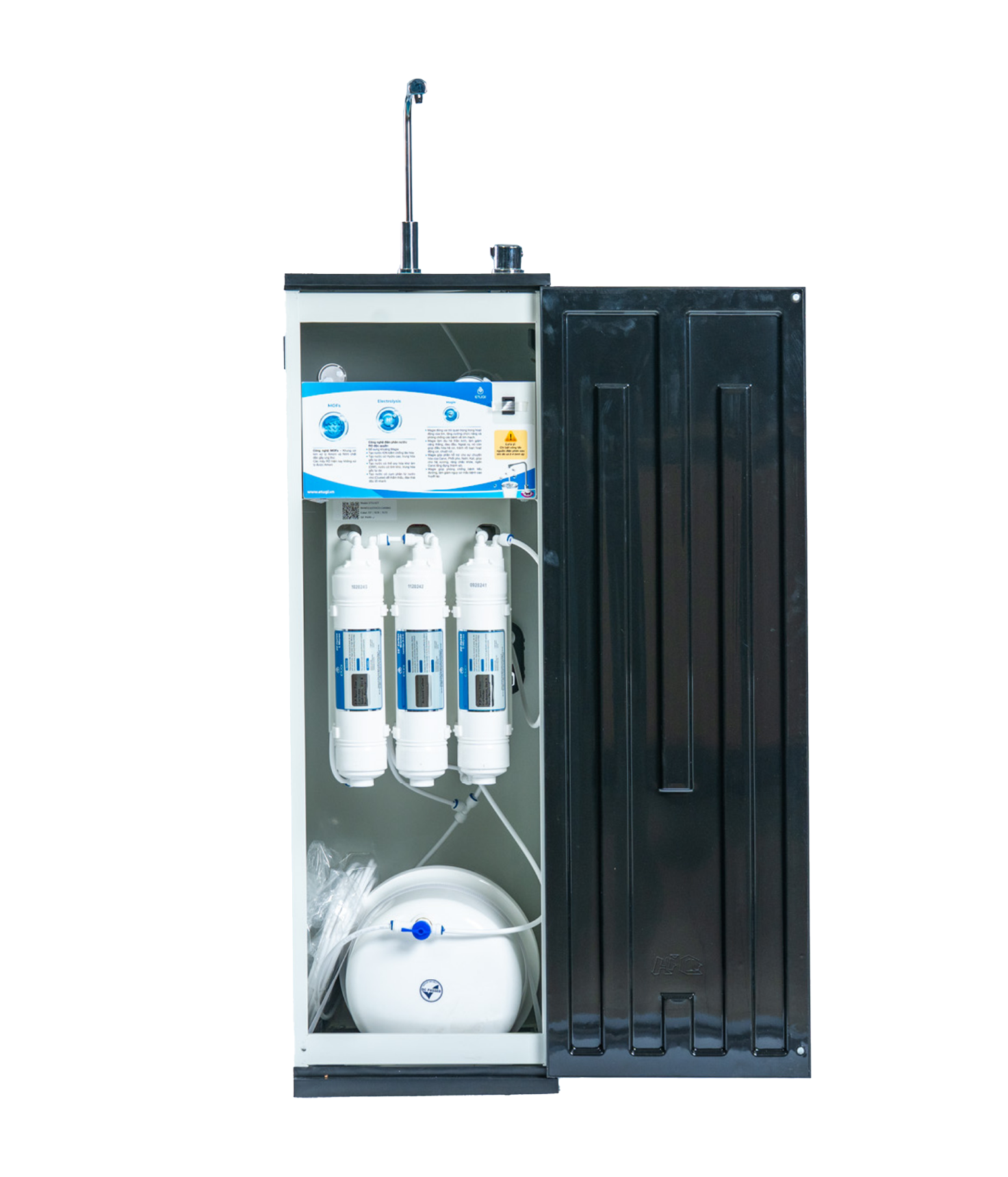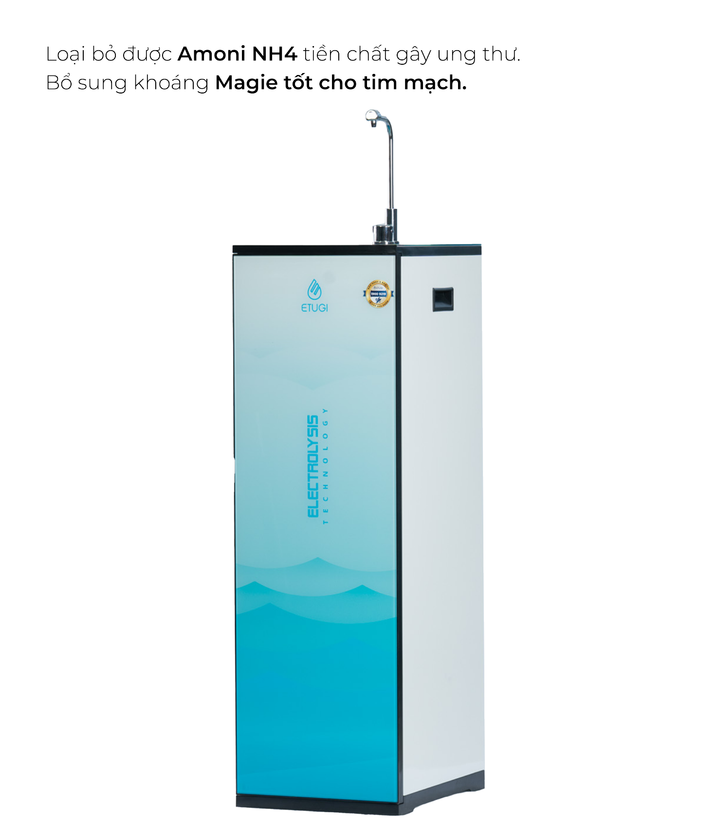 - Công nghệ điện phân trực tiếp từ nước RO, không cần thêm lõi tạo khoáng.